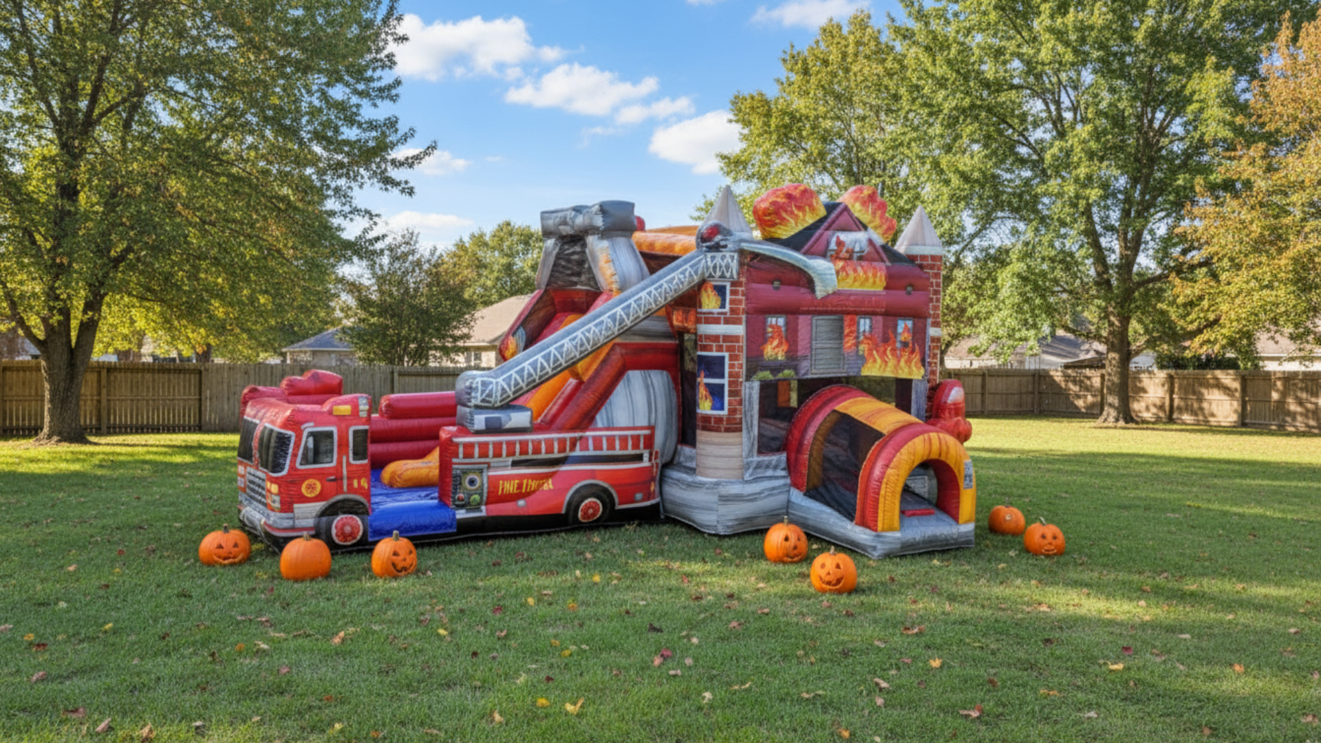 Yes, we offer a variety of themed inflatables, including haunted castles, pumpkin bounce houses, and spooky obstacle courses. Each inflatable is sanitized and inspected before setup.